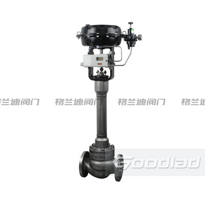 采用长颈阀盖保温,配用执行机构,具有总体结构紧凑、重量轻、稳定性好等优点。阀体采用精密铸造角形结构,材料为铝合金,具有良好的耐低温性。波纹管密封保证了调节阀在低温场合不外漏。